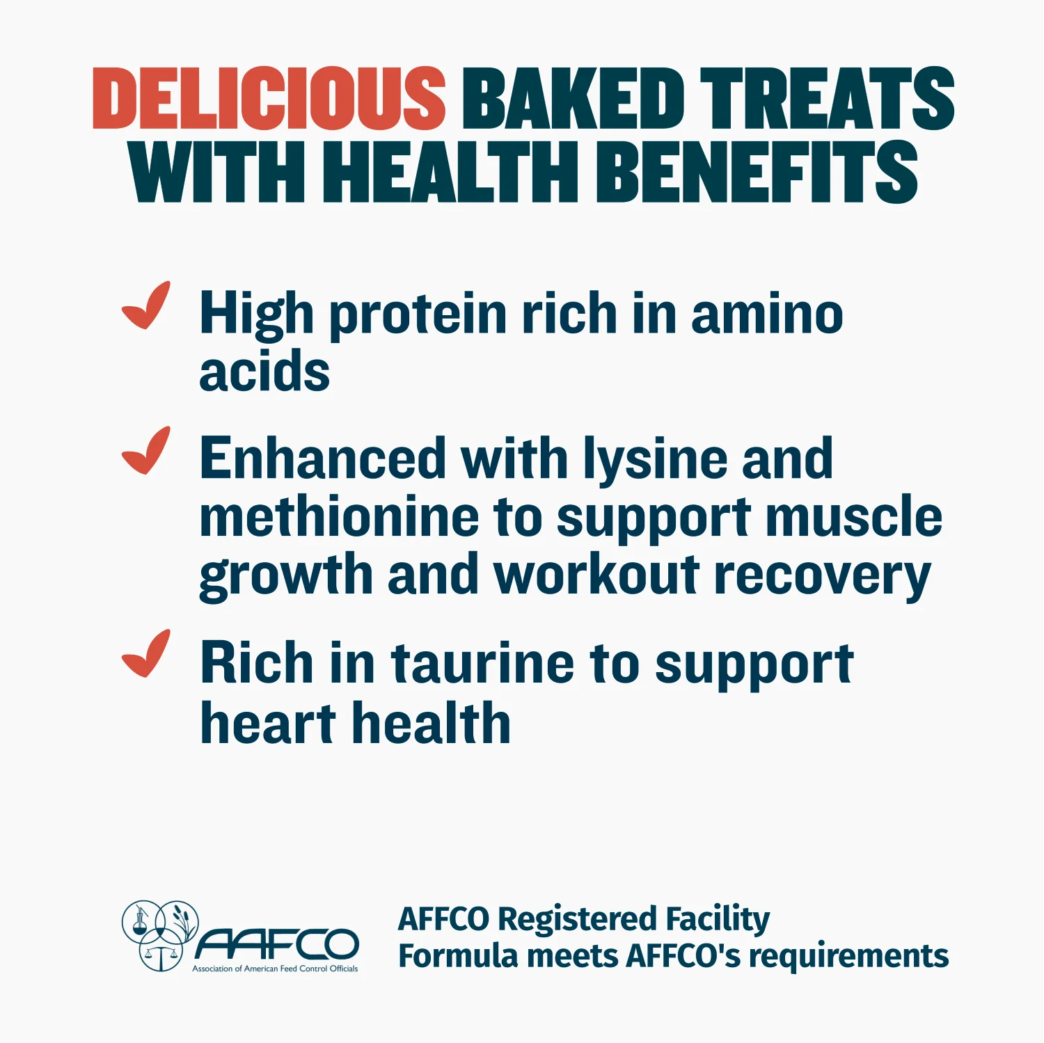 We’ve also made sure to formulate these treats using healthy, natural fats to provide a consistent source of slow-burning, long-lasting energy that will help power your dog through workouts, long walks, or just a game of fetch in the yard.