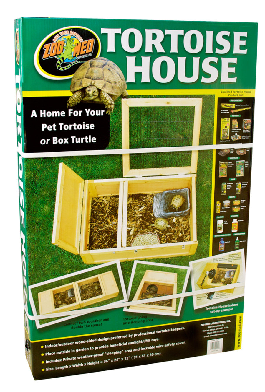 Preferred by professional tortoise keepers, the Zoo Med Tortoise House features sturdy wood siding to offer privacy and security for your pet. This product is designed for indoor and outdoor use. Place it outside to provide your pet with sunlight and natural UVB rays, which promote good health and shell growth. The Tortoise House includes: Private weatherproof sleeping area, Lockable wire safety cover, Sturdy wood and metal components, Modular design, allowing for expansion. Additional Information: The Tortoise House is easy to assemble. Its modular design allows you to remove the end panel and join two Tortoise Houses to double the amount of space for your pet.